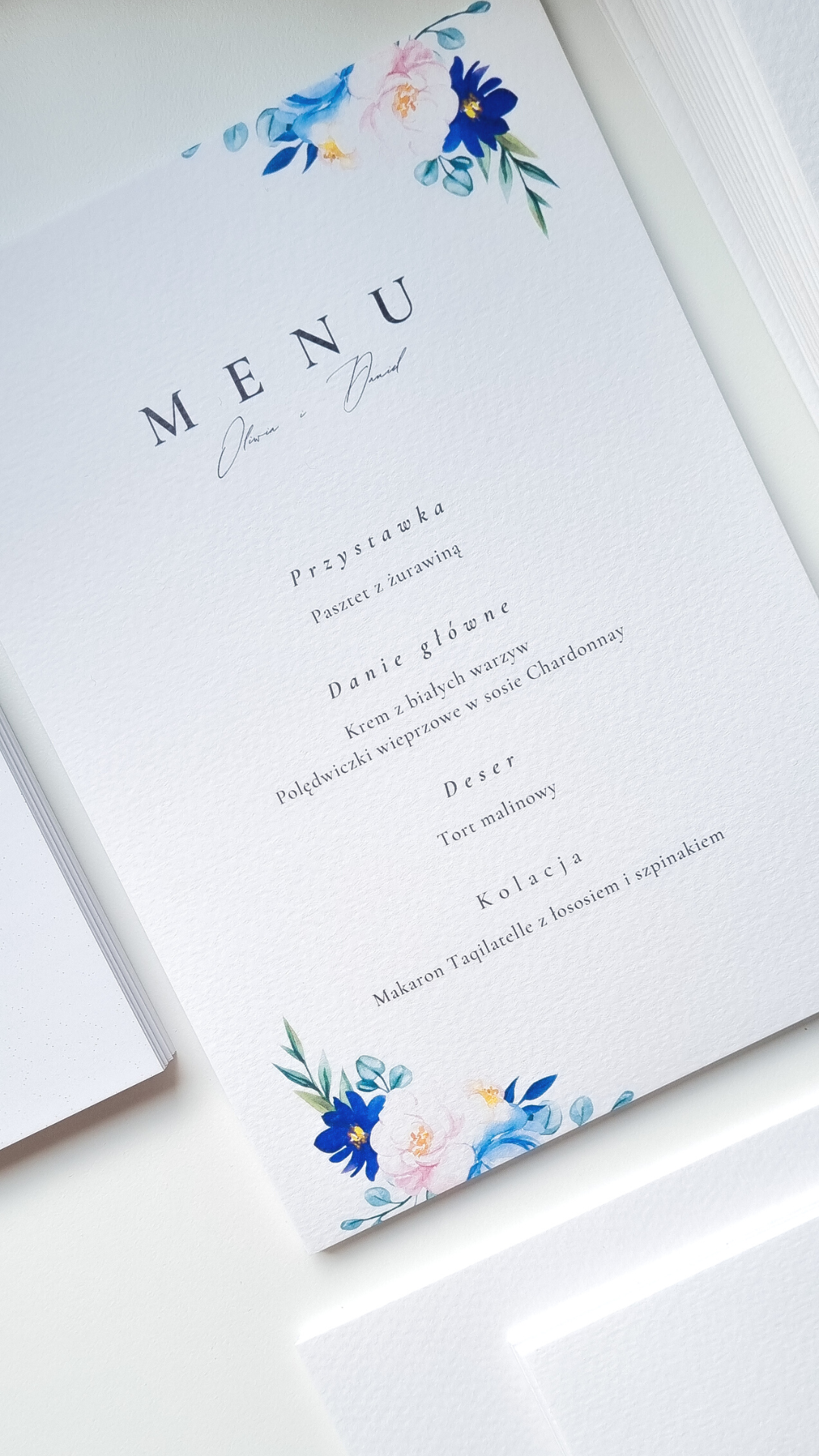 Dane do personalizacji menu prosimy uzupełniać po złożeniu zamówienia w polu "Twoje dane" -> "Informacje dodatkowe" lub wysłać plik na adres papeteriacnm@gmail.com