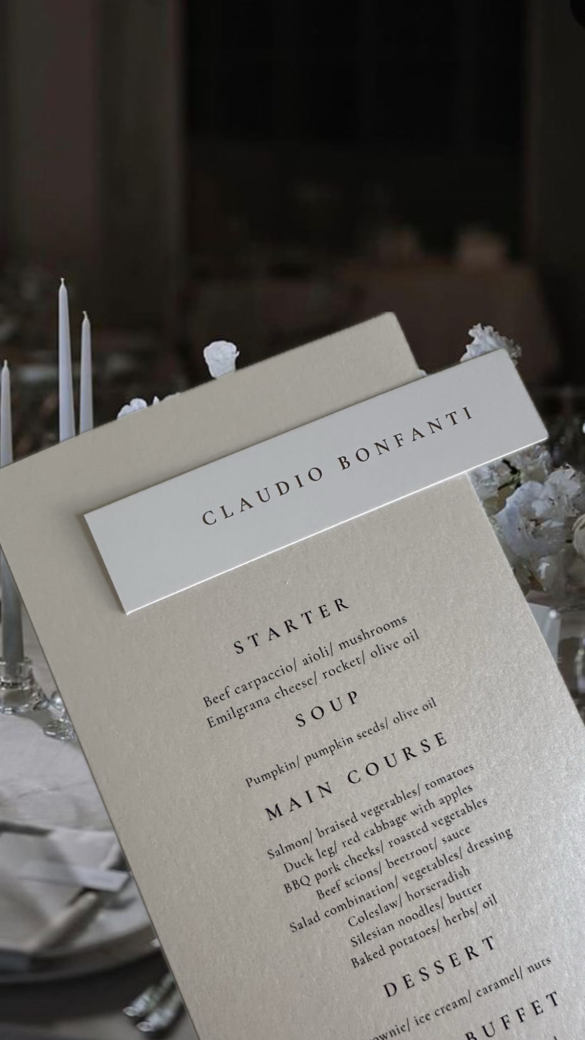 Dane do personalizacji menu prosimy uzupełniać po złożeniu zamówienia w polu "Twoje dane" -> "Informacje dodatkowe" lub wysłać plik na adres papeteriacnm@gmail.com