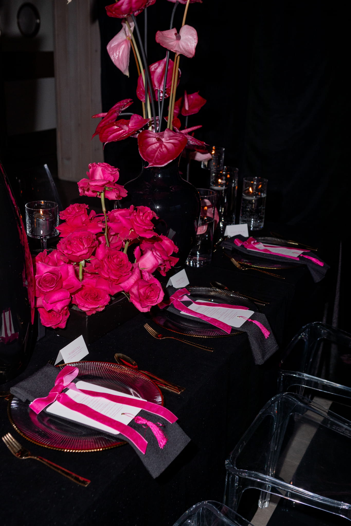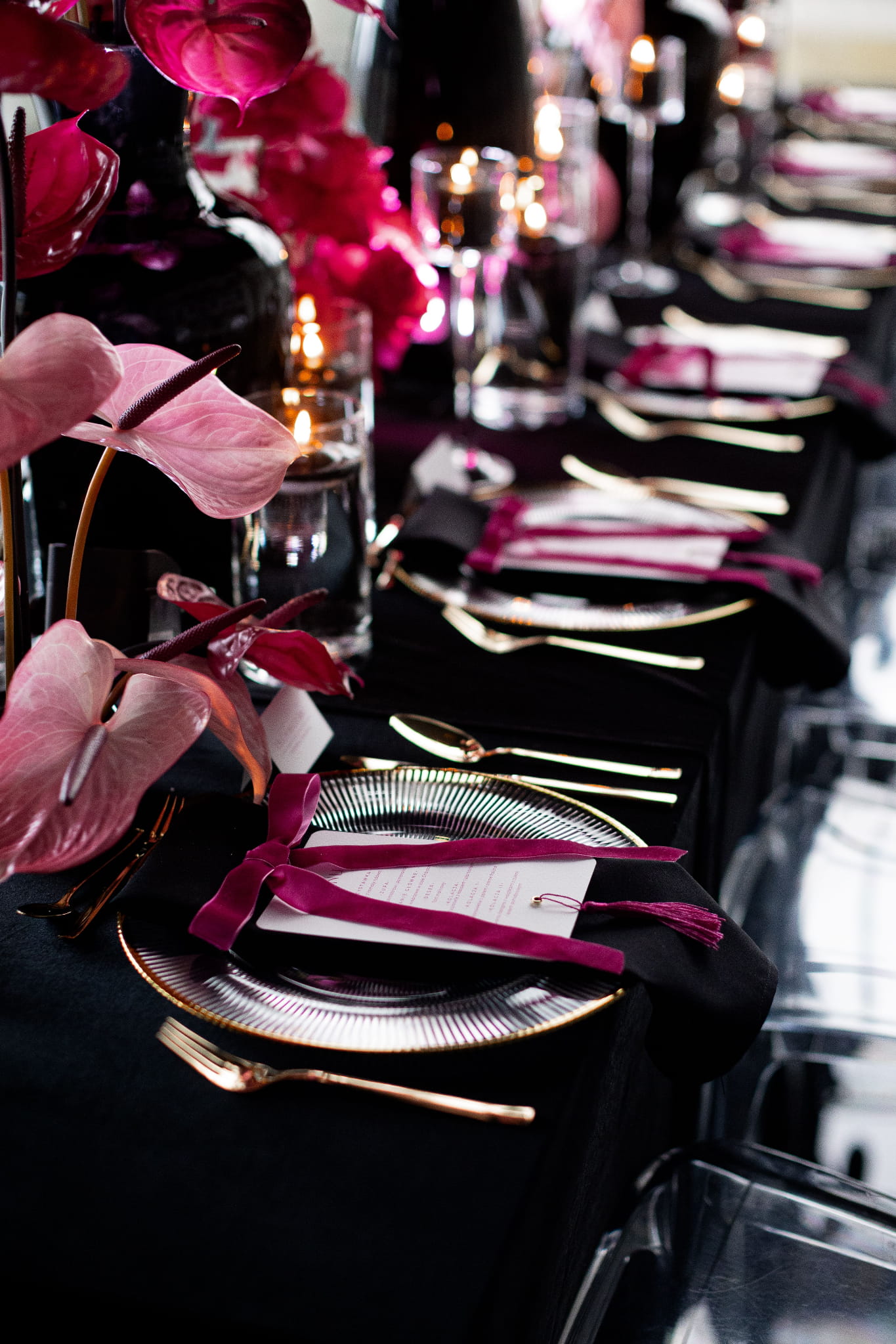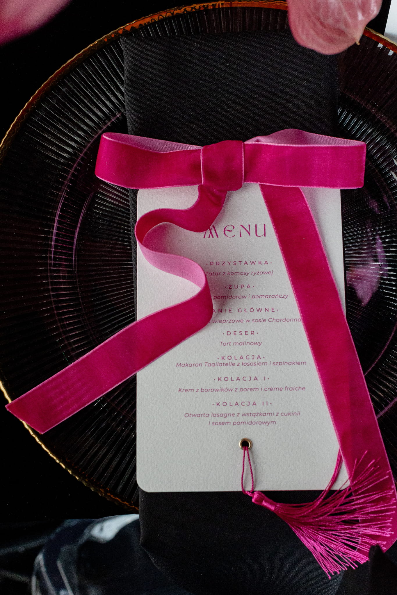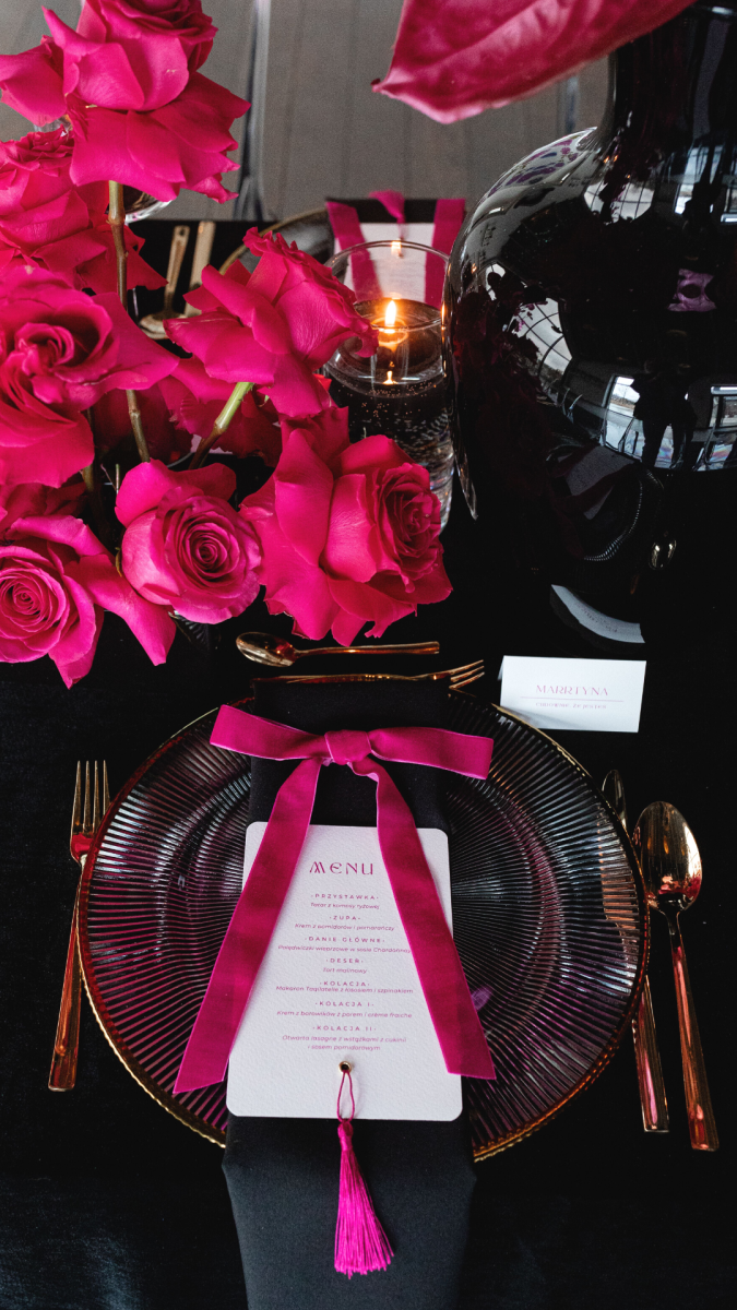 Menu Pink Love papier fakturowany różowy chwost złoty nit