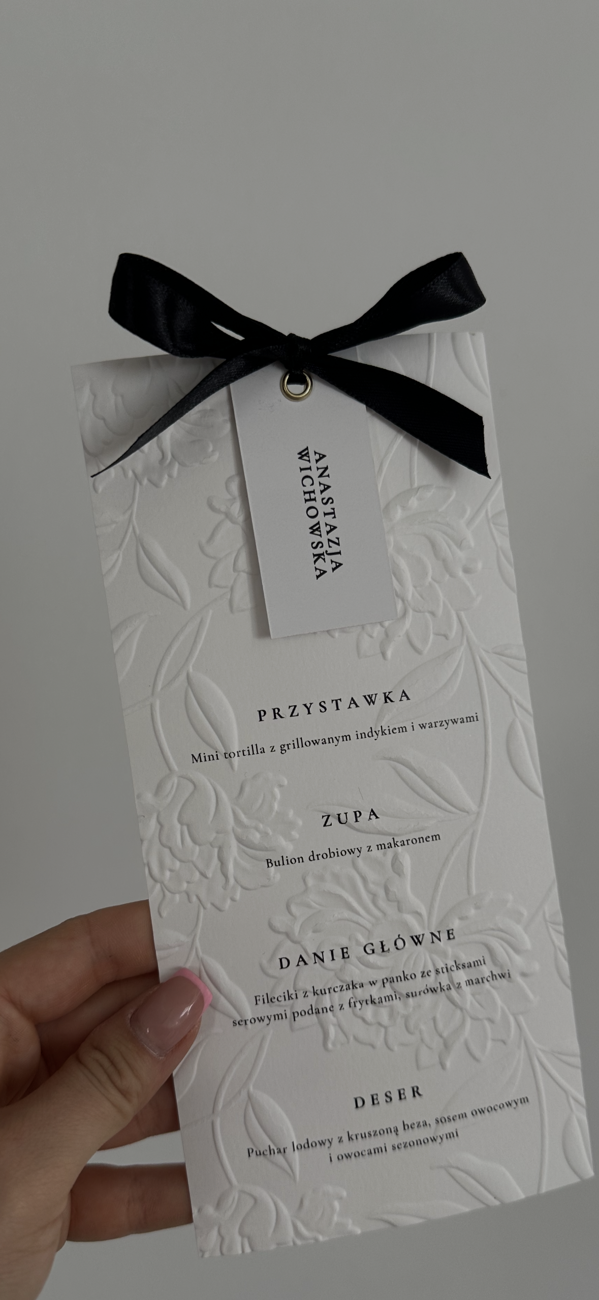Dane do personalizacji menu prosimy uzupełniać po złożeniu zamówienia w polu "Twoje dane" -> "Informacje dodatkowe" lub wysłać plik na adres papeteriacnm@gmail.com
