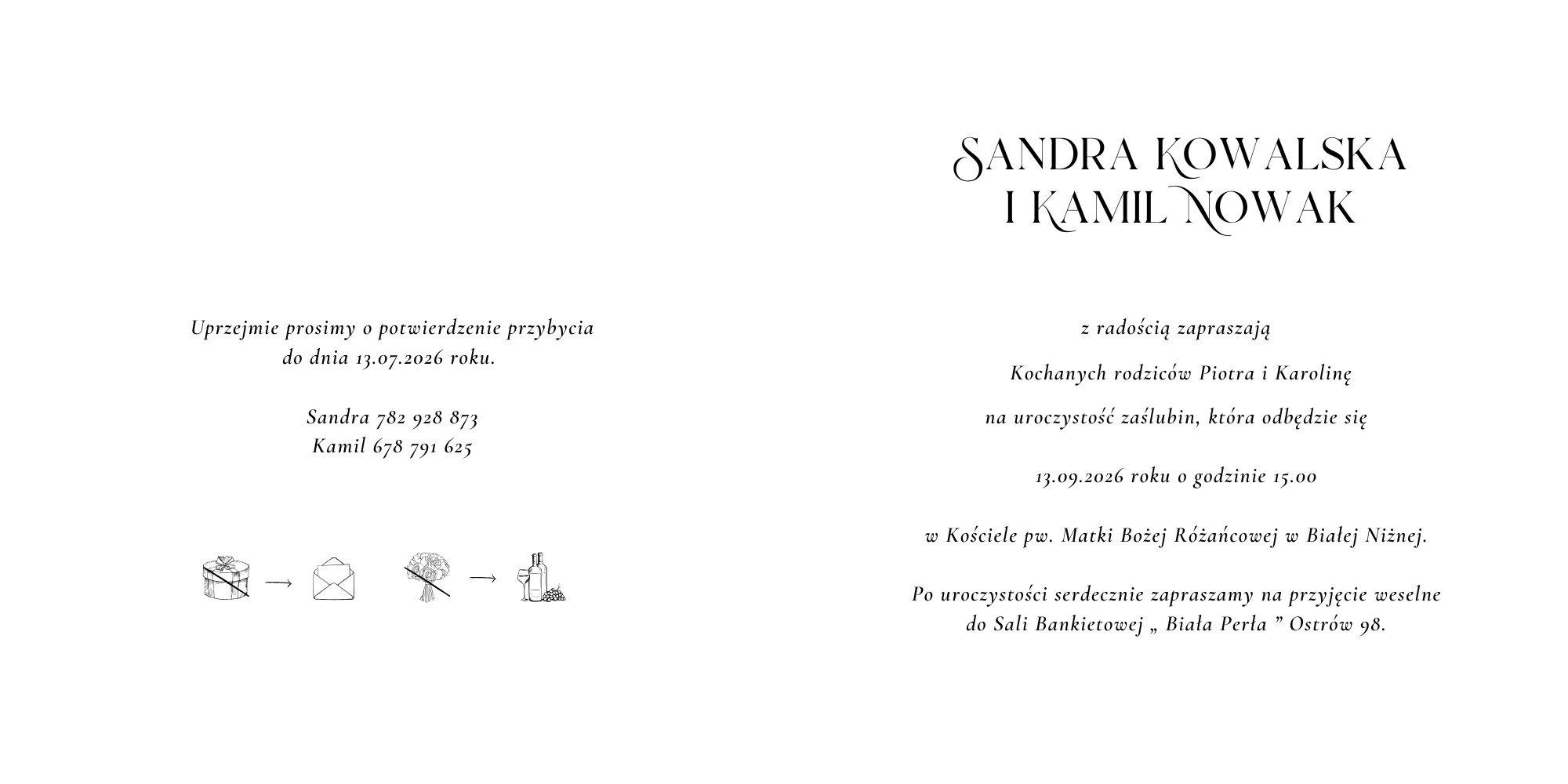 4. Proszę sprawdzić dokładnie pisownię. Zaproszenia oraz pozostała papeteria będzie drukowana w takiej formie w jakiej prześlecie do mnie plik).