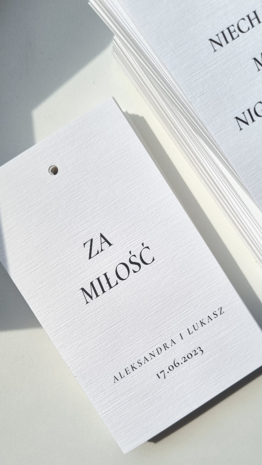 Zawieszka 6 x 10 cm ten sam tekst min. 20 szt.
